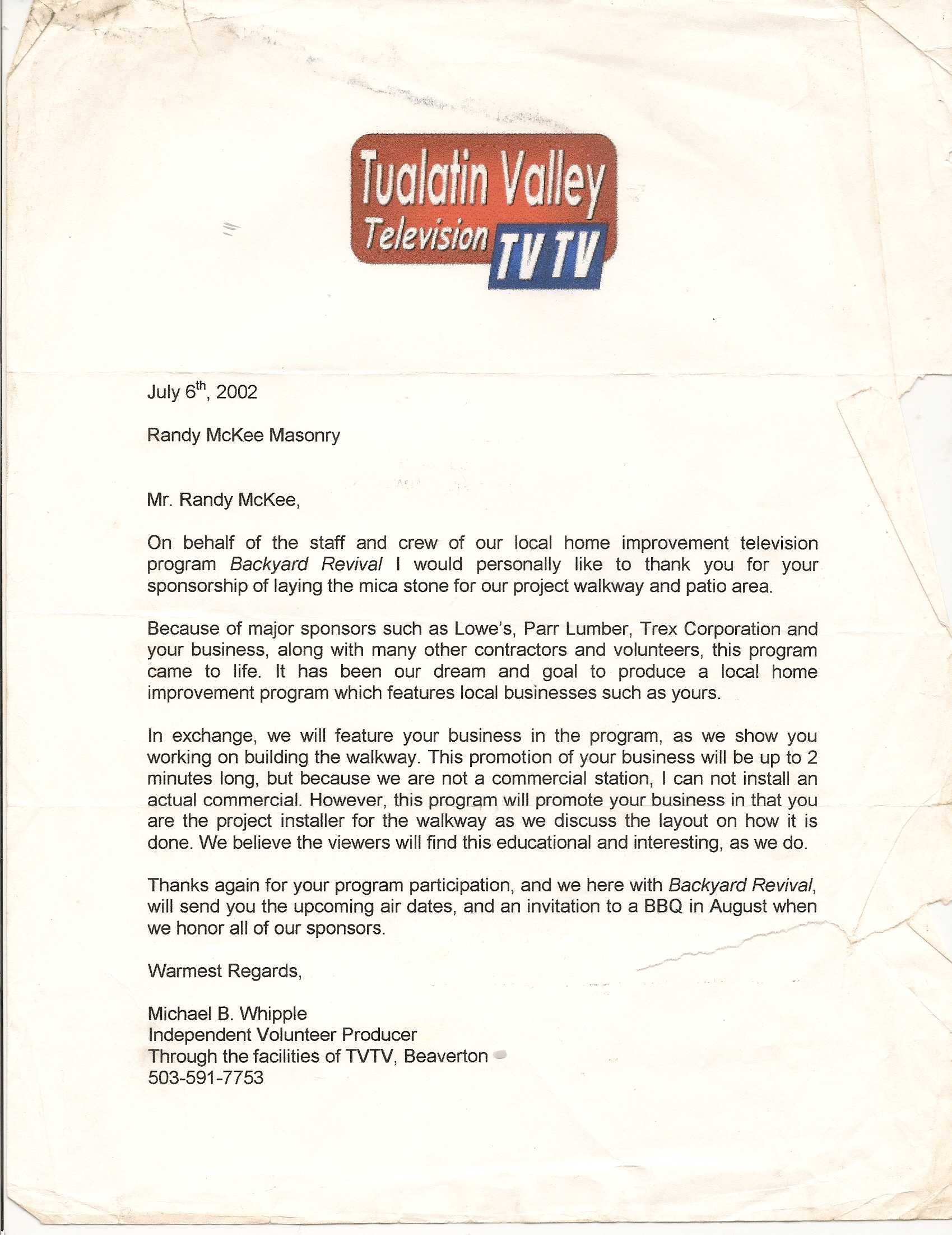 We have been filmed for a TVPB Television special called backyard revival in Tualitin Oregon