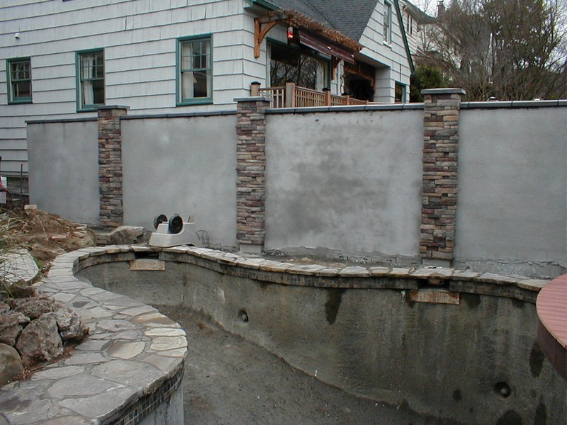 Here we removed a old pumice stone retainer wall and installed a new concrete