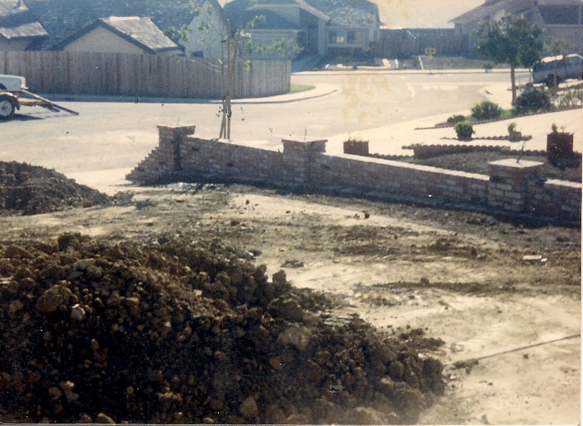 Here we removed a old pumice stone retainer wall and installed a new concrete footing , we then